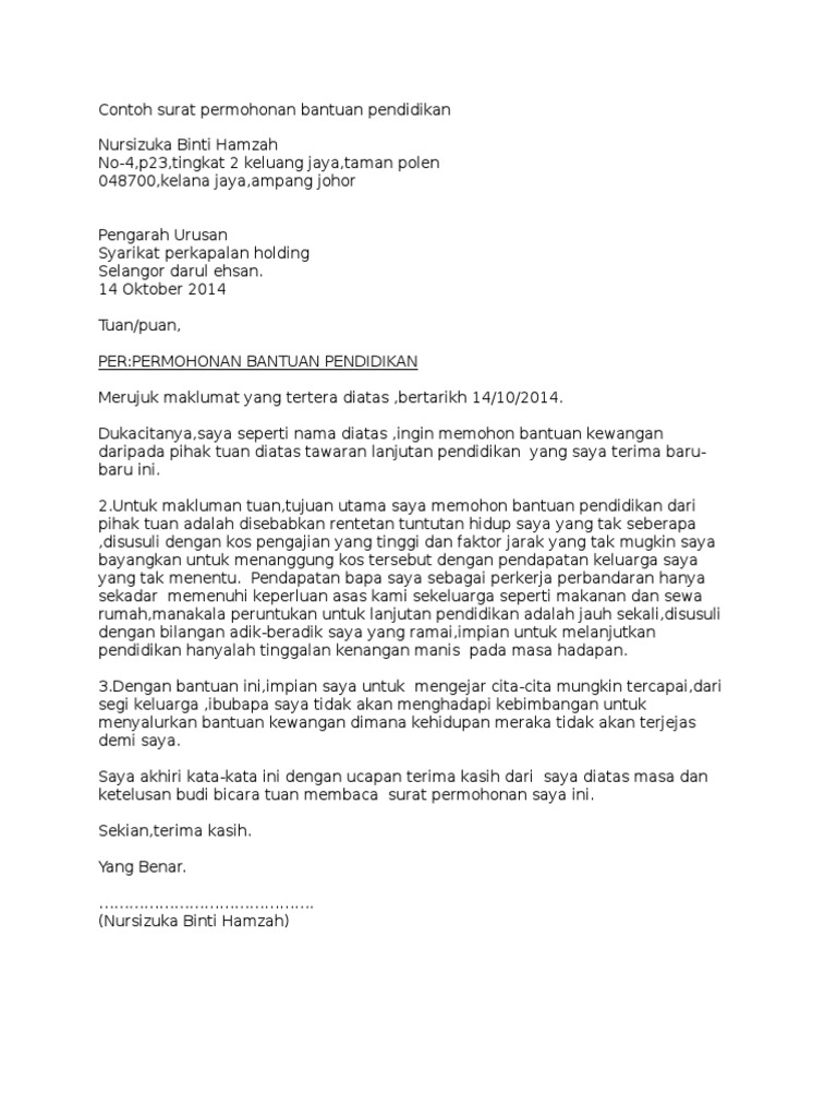 Contoh Surat Permohonan Bantuan Pendidikan Pdf